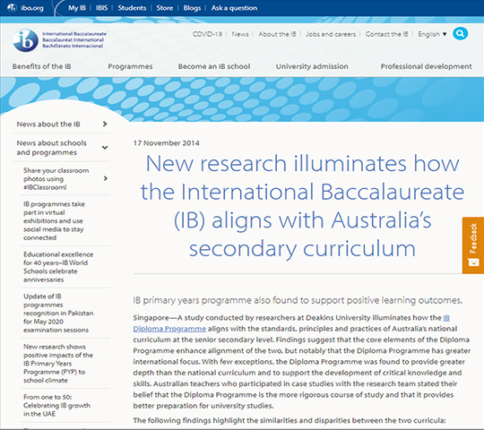 명성 높은 IB(국제 바칼로레아)의 교육 프레임 반영